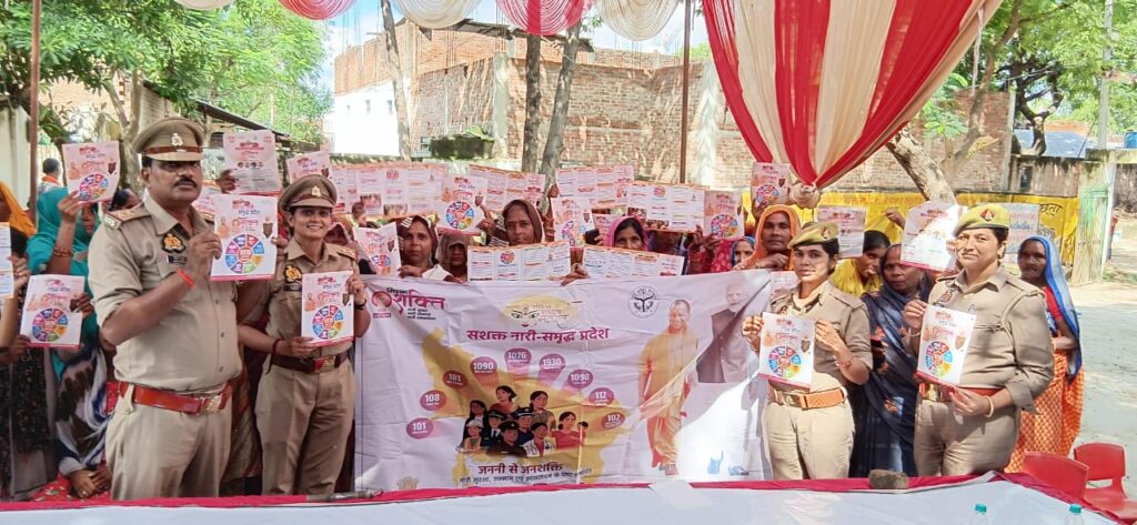 कमिश्नरेट कानपुर नगर द्वारा मिशन शक्ति फेज 5 के तहत नारी सुरक्षा, नारी स्वावलंबन के विषय में ग्राम गूंजेपुर पंचायत भवन में ग्रामीण महिलाओं/बालिकाओं को हेल्पलाइन नंबर 1090 ,1076, 1098, 112, 181 आदि नंबरों की जानकारी दी गई तथा यूपीसीओपी